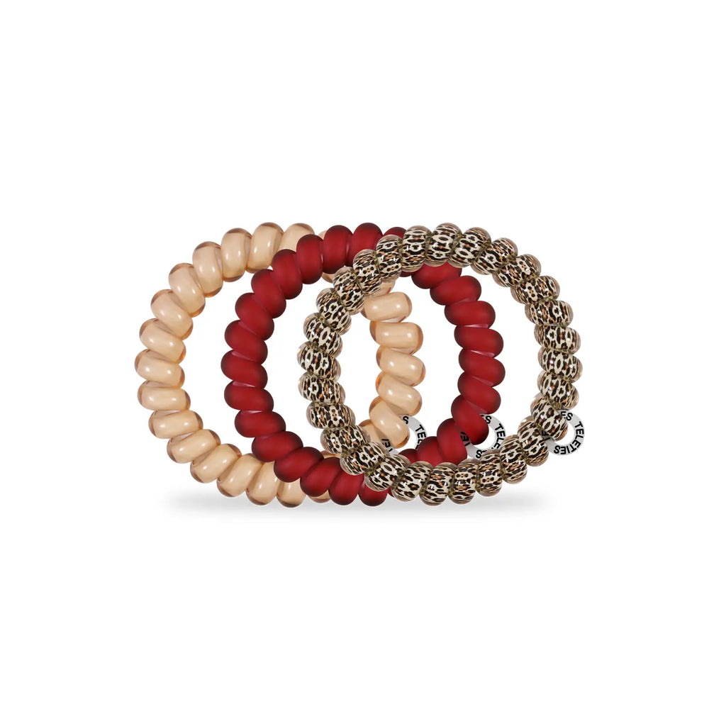 Wild SIde Large Hair Ties in Burgundy and Beige offer a strong grip without damage, doubling as a chic wrist accessory when not in use. Your new favorite hair essentials all year round. Strong grip, no rip design for all-day hold Doubles as a stylish bracelet Durable and waterproof for all occasions Gentle on hair—prevents breakage, headaches, and creases